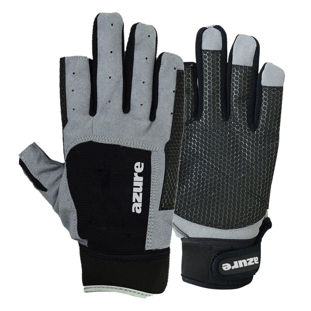 Amara Synthetic Leather Grey. 4-Way Cloth Black. Sticky Palm, Thumb & Forefinger Reinforcement for Maximum Protection. Neoprene wrist “2 CUT / 3 FULL FINGERS”